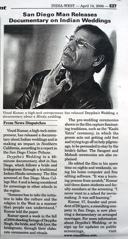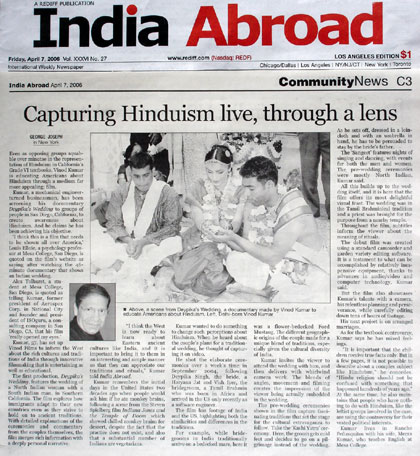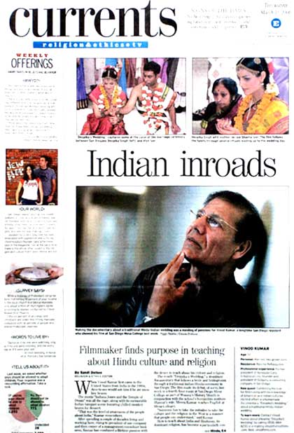The San Diego Union-Tribune - Indian inroads Filmmaker finds purpose in teaching about Hindu culture and religion.....